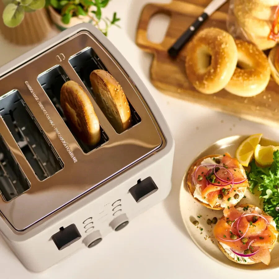 Add a modern touch to your countertop with the Bella PRO 4-Slice Toaster, featuring a sleek Oatmilk finish and extra-wide slots to accommodate bagels, thick slices of bread, and more.